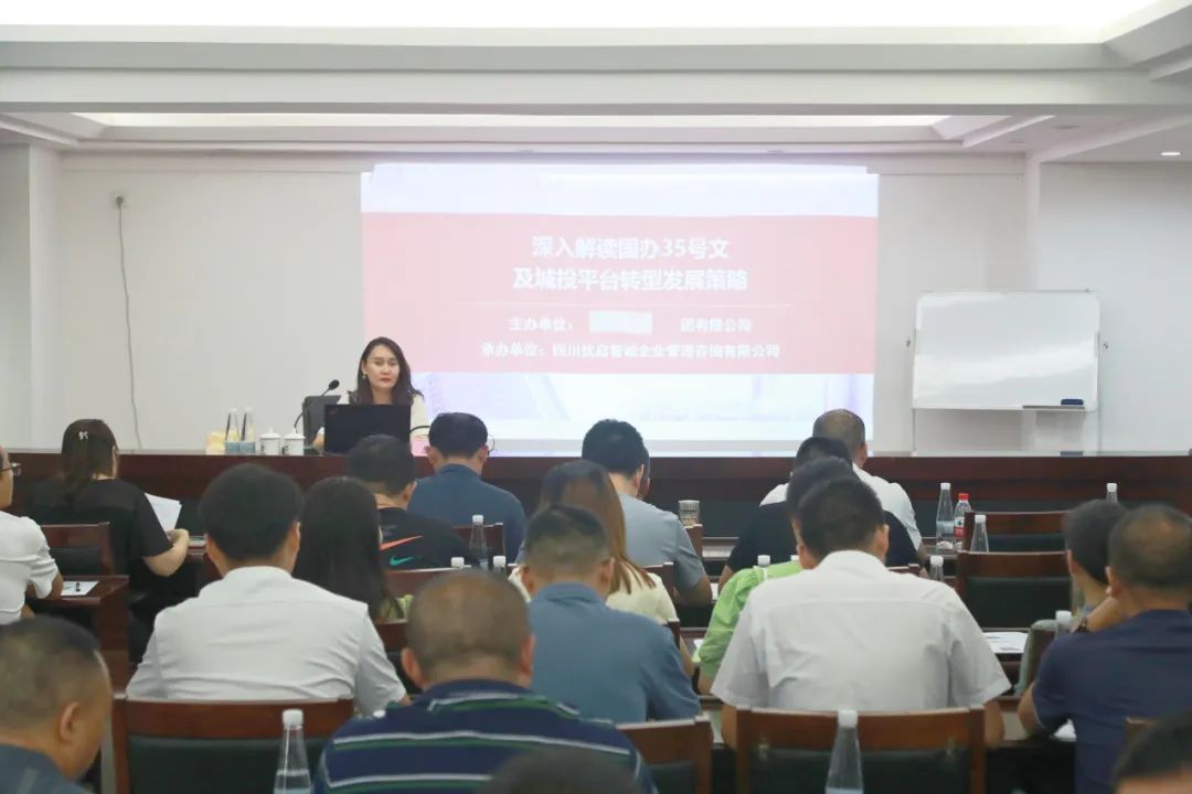 2024年6月22日,优启咨询为某国企开展了《深入解读国办35号文及城投平台转型发展策略》课程培训,本次课程共计50人参与了培训。