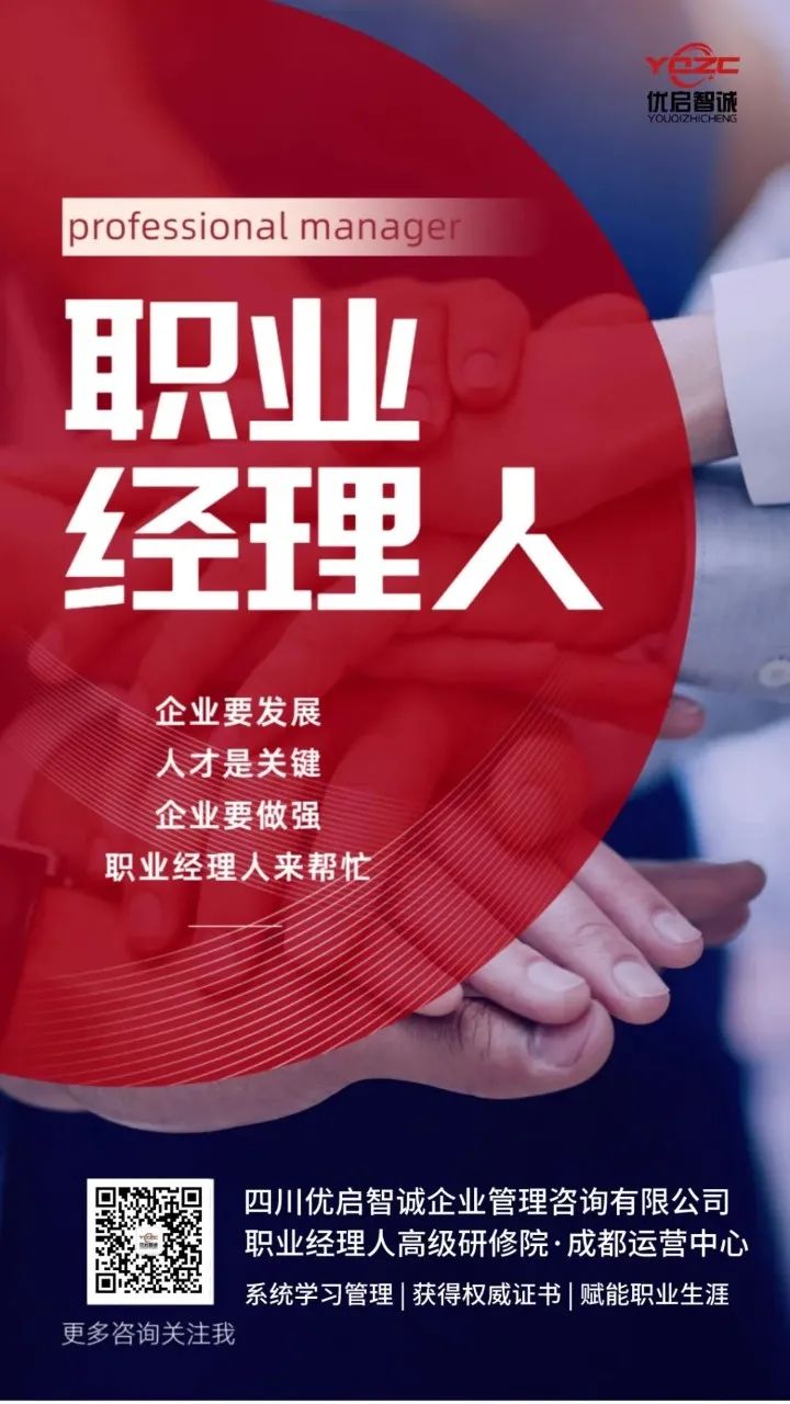 优启咨询与中国职业经理人协会强强联合搭建中国职业经理人高级研修院·成都运营中心,开展中国职业经理人资质评价与培训工作,致力于打造中国职业经理人才资质培养中国西部新高地。
